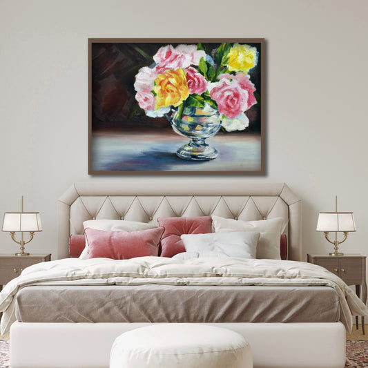 Roses In Silver Vase Print