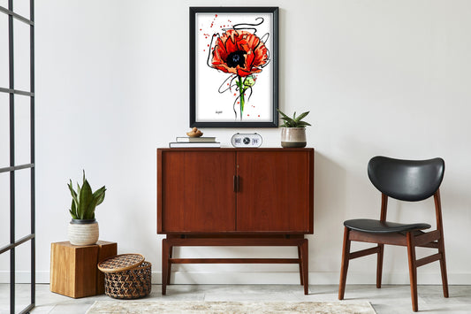 Contemporary Red Poppy Print