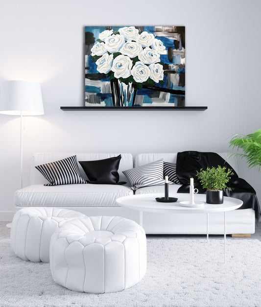 Printable White Rose Wall Art – Contemporary Oil Painting Floral Print