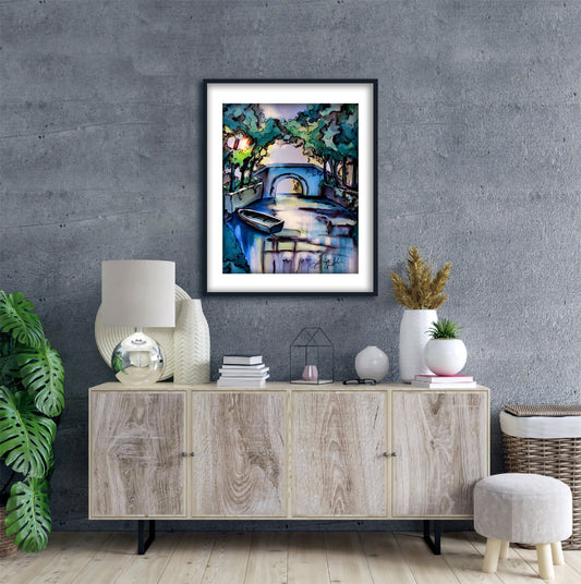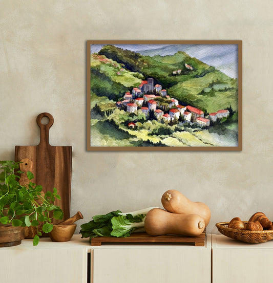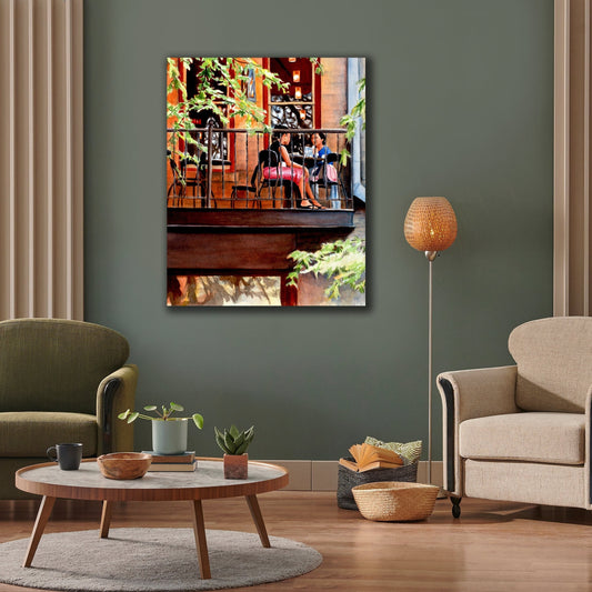 Ladies Lunch Watercolor Landscape Painting Digital Print