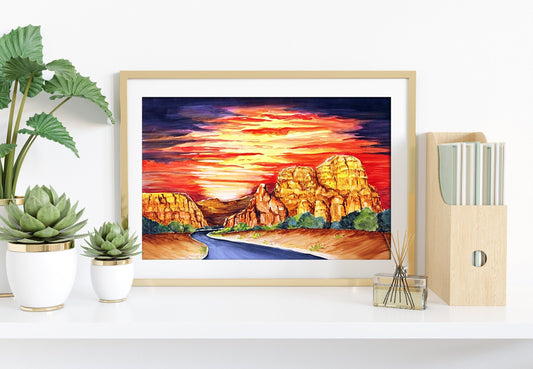 Printable Sunset Landscape Wall Art – Southwestern Watercolor Painting