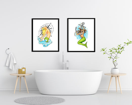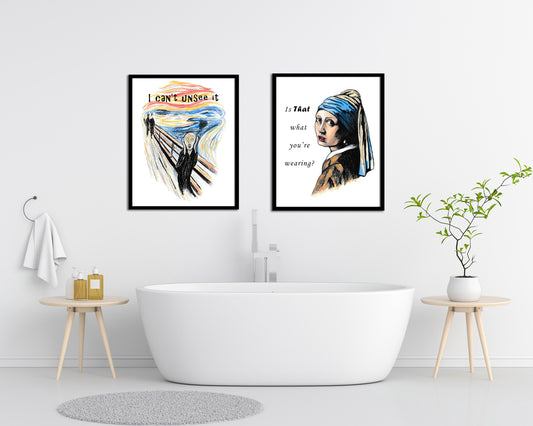 Funny Famous Art Bathroom Wall Set of 2 Prints