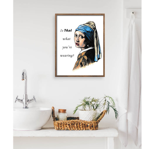 Funny Bathroom Sign Digital Print Girl With A Pearl