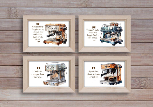 Funny Coffee Bar Wall Art Printable, Espresso Machine Illustration